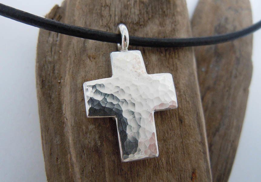 Für größere Jungs und Mädchen findest Du coole massive Kreuzanhänger am Lederband oder Silberkette, die ich gerne auf der Rückseite mit dem Namen oder Datum o.ä. bestempele.